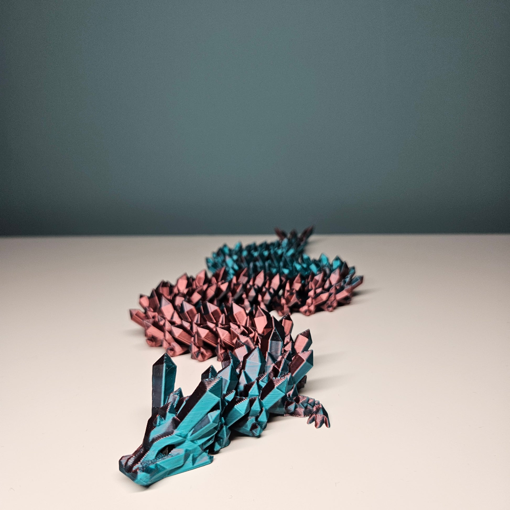 49cm 3D Printed Articulated Crystal Dragon & Egg in Teal & Red
