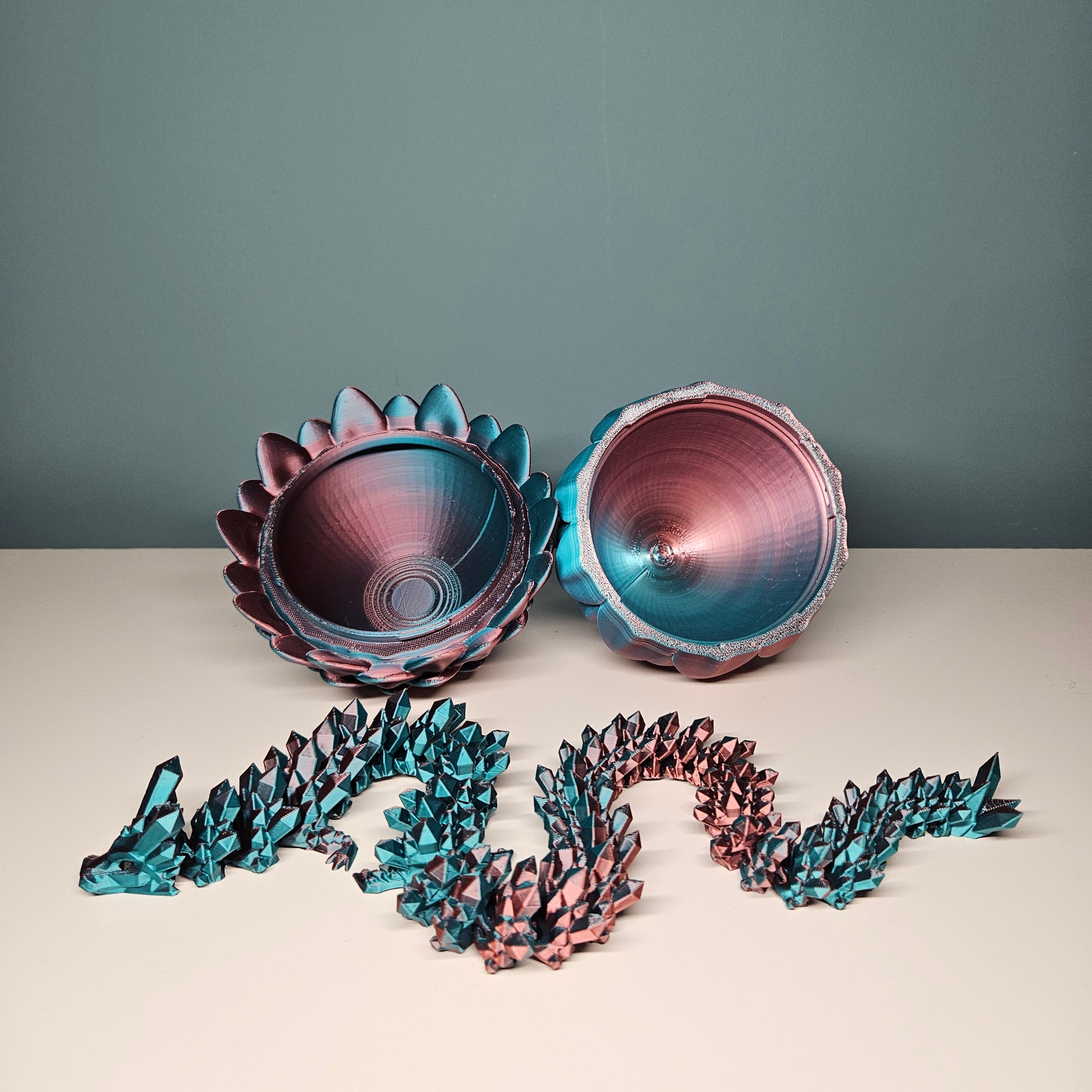 Each of these is a true one of a kind as the dual colour filament cannot be guaranteed to be the same twice. They are unique so we only ever have 1 in stock of the Dragon & Egg pictured.
