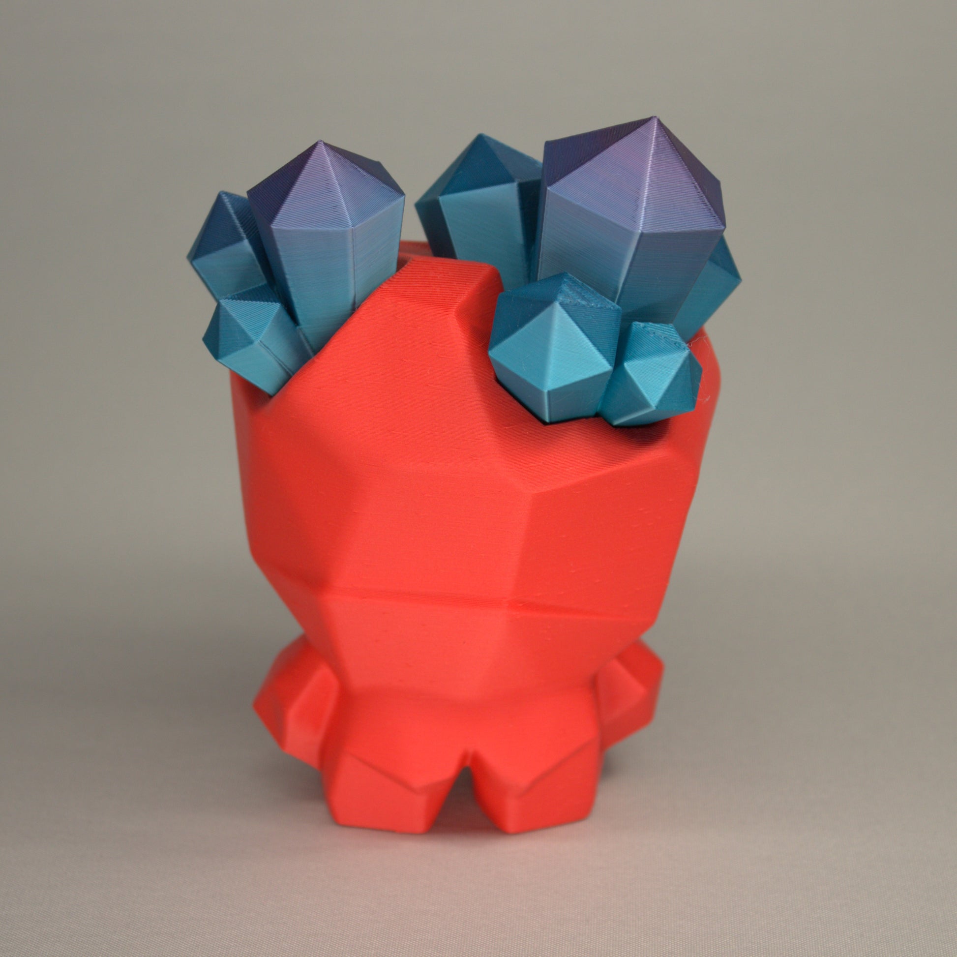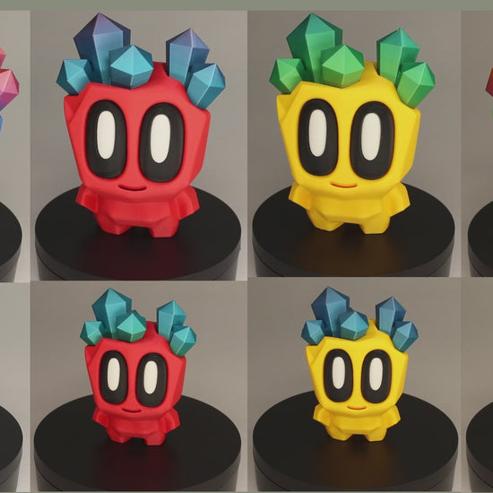 Bring a splash of colour and whimsy to your space with this 3D printed Rock Pal, featuring a sparkling geode-inspired head in bold primary colours. Perfect as a desk buddy, quirky gift, or collectible figurine, this unique handmade creation is designed to brighten any shelf, workspace, or play area.