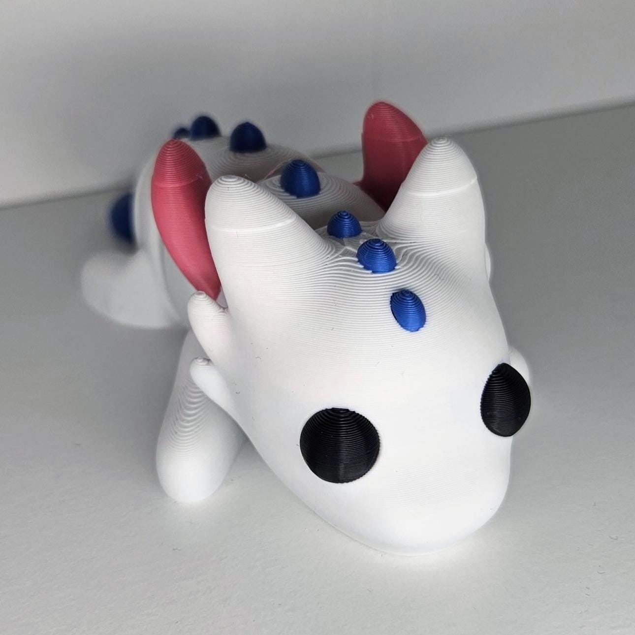 Medium Sized Flexible Dragon with Wings In White, Blue & Pink. Articulated Fidget Animal